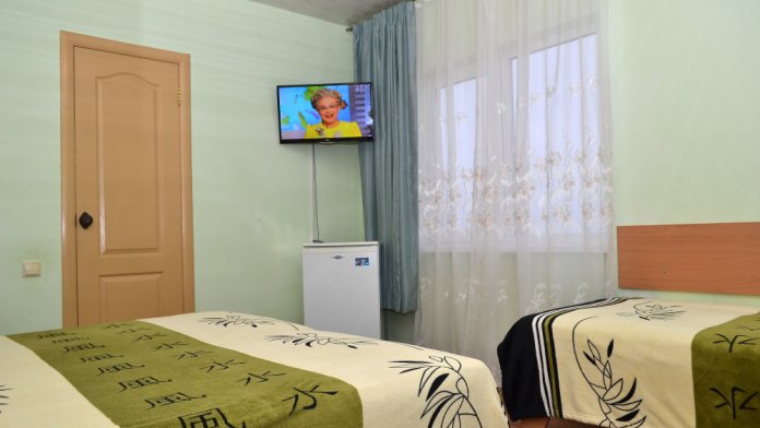 Для отдыха гостям предлагаются 3-х и 4-местные комнаты, в которых есть вся необходимая мебель, посуда для чая, кофе, холодильник, телевизор, сейф, фен. В комнатах также есть кондиционер, что немаловажно для отдыха в летний жаркий период. Интерьер выполнен в спокойных, светлых тонах. В каждой комнате имеется отдельный санузел с душем и набором полотенец (в том числе и для пляжа).