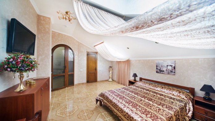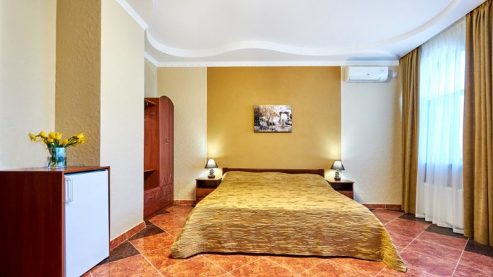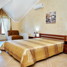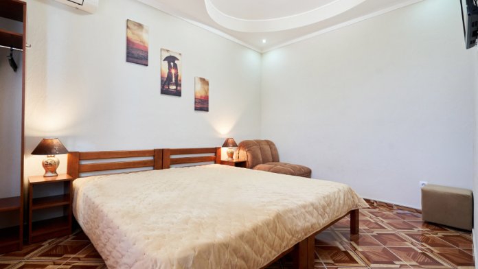 В гостевом доме есть номера, которые подойдут как небольшой семье или компании, так и большие двухкомнатные номера, которые вмещают в себя до 6 человек.