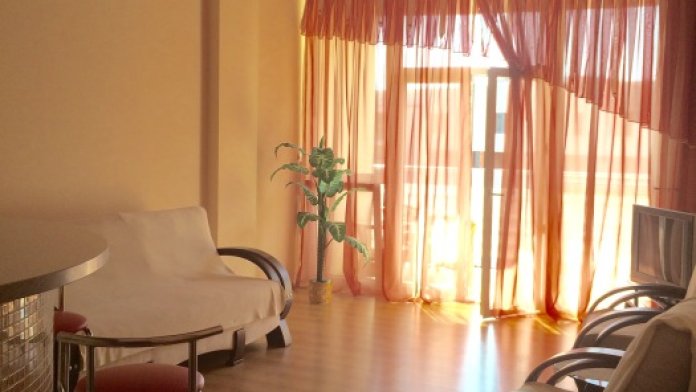 Квартира двухкомнатная площадью 88 м2 с современным ремонтом (арки, французские натяжные потолки, барная стойка, фанкойлы, кабельное ТВ, подключение к интернету). Количество спальных мест 4.