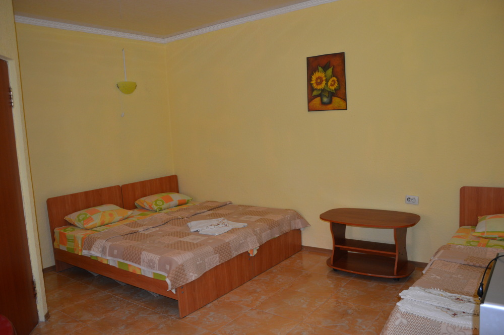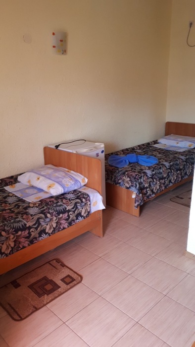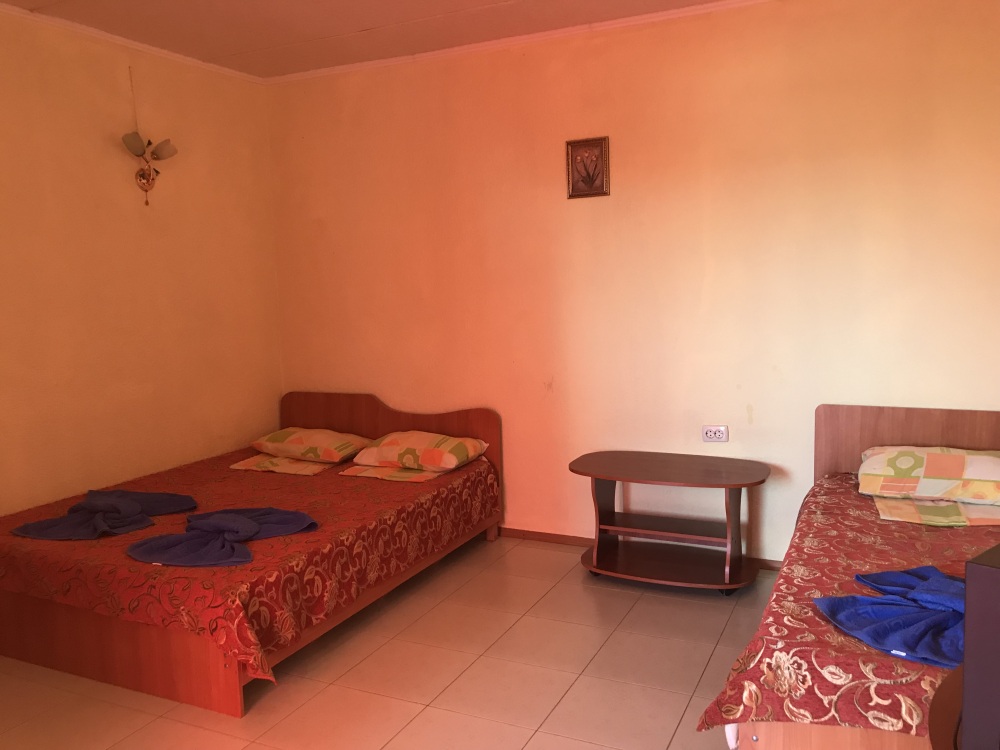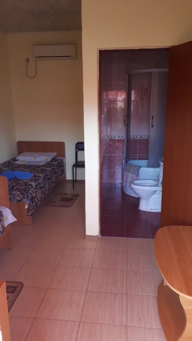 Пансионат "Мари-Анна" расположен в п. Межводное Черноморского района, в 50 шагах до пляжа ( до действующего пляжа 500м)и 150 метров до лимана с лечебными грязями. Предлагаем номера со всеми удобствами: мягкая мебель, телевизор, холодильник, кондиционер, туалет, умывальник, душевая кабинка. Холодная и горячая вода постоянно (пансионат не несет ответственности за работу поселковых коммуникаций: отключение света, воды и т.д.)
