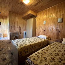 Для отдыха предлагаем два коттеджа, сделанные из экологичного материала — деревянного сруба, расположенные на обширной территории. Здесь Вы сможете насладиться единением с природой. Для Вас приготовлены комфортабельные однокомнатные двухместные номера, полностью обустроенные всем необходимым: удобной мебелью, бытовой техникой и отдельным санузлом.