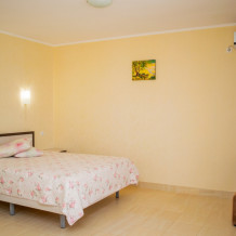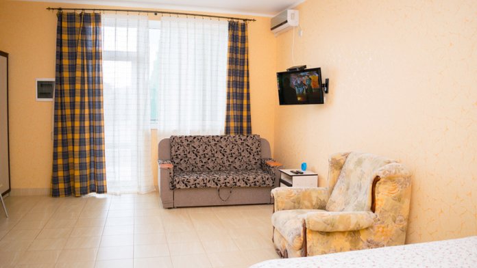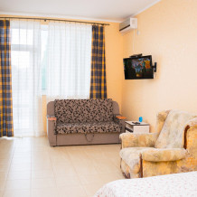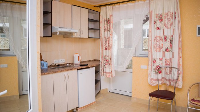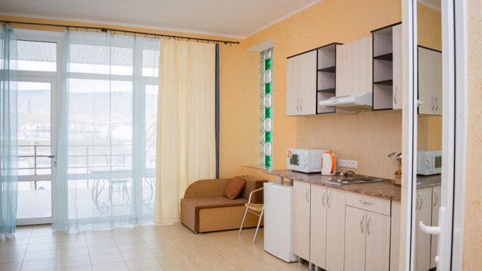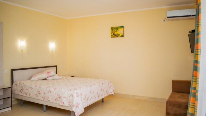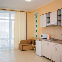 Отличный номер для отдыха у моря. Расположен на 2м этаже в первом эллинге. Кухня оборудована всем необходимым. Есть мангал у каждого эллинга. Закрытая и очень ухоженная территория. Есть магазин, а также каждый день привозят продукты фермеры. Лежаки входят в стоимость номера. Пляж обустроен и работает спасатель. Вначале при входе галька, потом песок. Идеальное место для спокойного семейного отдыха. Есть две столовые с домашней едой.
