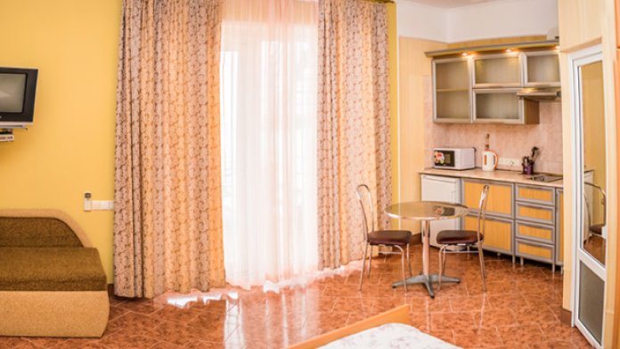 в целом все неплохо. большой номер, кухня, где есть все необходимое. много полотенец, даже есть пляжные, что очень даже удобно. один минус - общий балкон с соседним номером, а столик один на два номера, это крайне неудобно. также как пожелание - нужно сделать затемнение на входную дверь, иначе все просматривается с улицы.