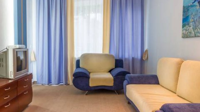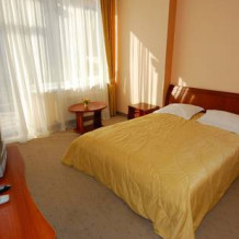 В номере двуспальная или две односпальные кровати. Также есть весь набор полотенец, халаты. Фен, электрочайник, посуда, Утюгом можно пользоваться в специально отведенном месте.