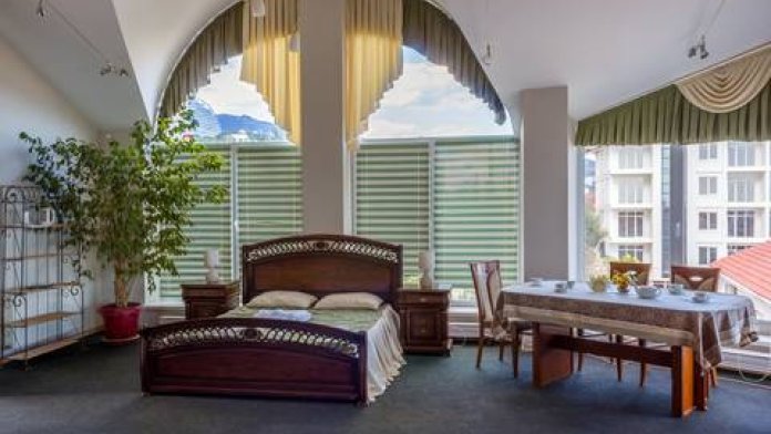 Видовой шикарный комфортный 1 комн. люкс подойдет как для романтиков так и для отдыха с детьми. Спальные места: 1 двуспальная кровать, 1 диван 1−2-мест. на усмотрение клиента. Есть возможность добавить 1 спальное место. В номере есть сейф фен, чайник, посуда и весь набор полотенец. Терраса с видом на море и горы приятно вас удивит.