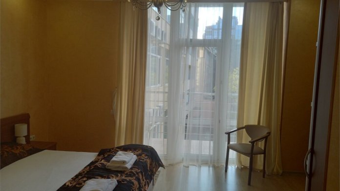 К услугам гостей комфортабельный однокомнатный номер полулюкс с выходом на террасу и видом на море. В номере есть все необходимое для комфортного проживания - кондиционер, кабельное телевидение, холодильник, санузел с душевой кабинкой , бесплатными банными принадлежностями и феном. Гостям предоставляются тапочки и халат. А также гардероб, и на окнах москитные сетки.