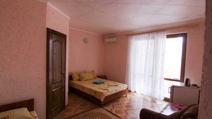 Размещение: комфортабельные люкс двух комнатные, трех- и четырехместные номера со всеми удобствами (кондиционер, холодильник, т/в тюнер, горячая/холодная вода круглосуточно, санузел с душем). Инфраструктура: огромный зал для отдыха, автостоянка, беседки во дворе, кухня, стиралка, мангальная зона.