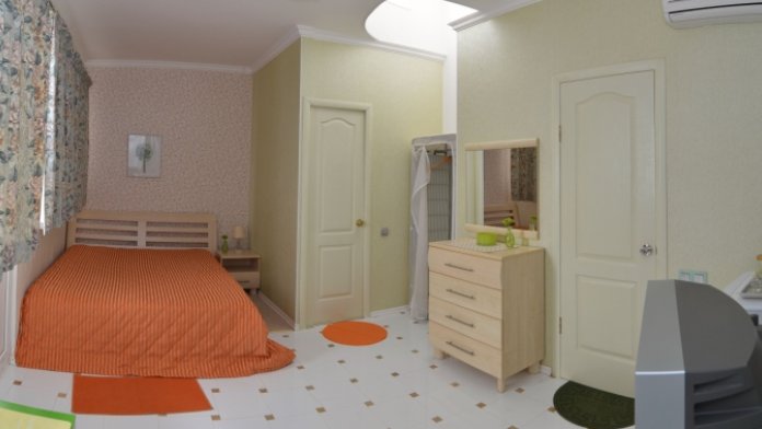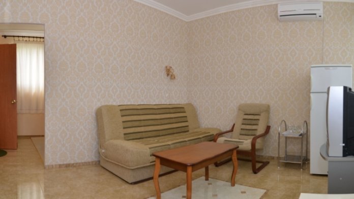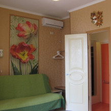 Это комфортный однокомнатный номер. Он расположен в 3-комнатном отдельно стоящем коттедже на три номера, у каждого номера отдельный вход, дворик с набором летней мебели, видом на море и сад.