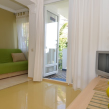 Это однокомнатный номер с современным дизайном, новой мебелью и техникой. Название не случайно: в отдельном дворике номера действительно растут сосны. Он расположен в 3-комнатном отдельно стоящем коттедже на три номера, у каждого номера отдельный вход, дворик с набором летней мебели, видом на море и сад.