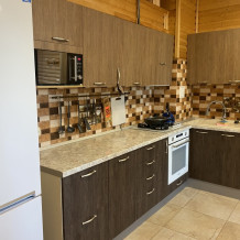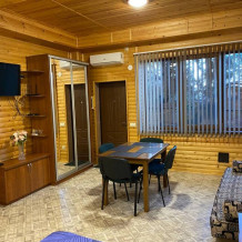 Первый номер находится на первом этаже. Возле номера есть дворик. Во дворе столик со стульями. Столешница с мойкой, мангал, сушилка для белья. Номер отделан деревом. Второй номер находится на втором этаже с большим балконом и большими панорамными окнами - вид на море и горы. Третий номер состоит из гостинной, совмещенной с кухней, спальней и комнатой для отдыха. Каждый номер оборудован всем необходимым для комфортного отдыха: современная мебель, кондиционер, теплый пол, плазменный телевизор, кабельное телевидение, утюг, гладильная доска, газовая печь, электрочайник, холодильник, посуда, стиральная машина, санузел, душевая, вода горячая и холодная постоянно, Wi-Fi.