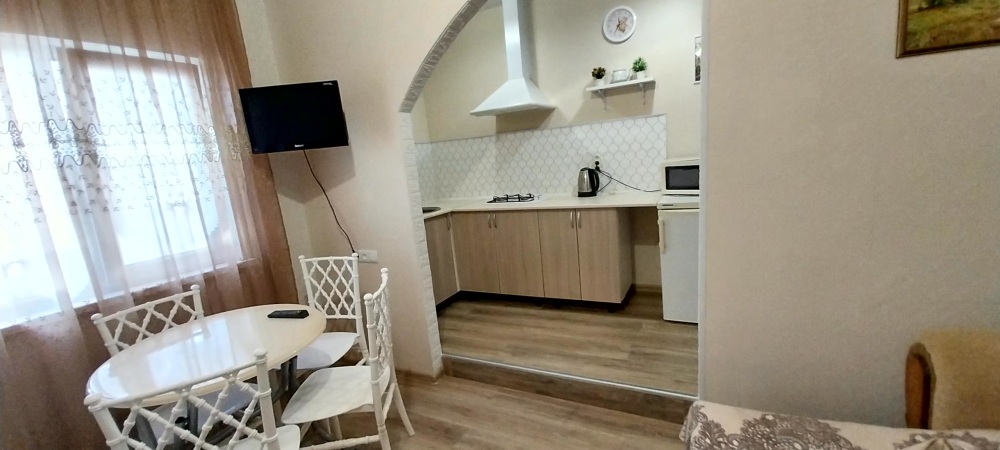 Двор дома оборудован беседкой с мангалом и удобными топчанами. Около входа в комнаты имеется отдельное местечко для вечернего отдыха. В комнатах есть все необходимое для проживания и приготовления пищи.