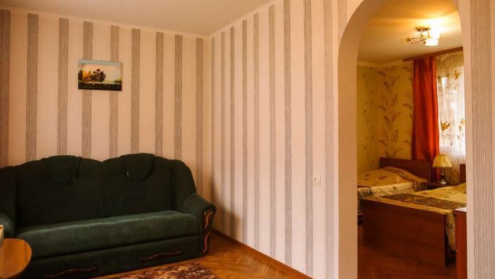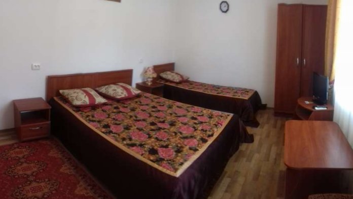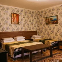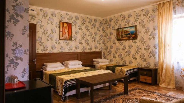 В номере площадью 18-25 кв м 1 двуспальная и 1 односпальная или 3 односпальные кровати. У номера отдельный вход.