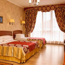 В нашем номерном фонде представлены: стандартные номера (2-3-местные), двухкомнатный номер на 4-5 человек, номера Полулюкс (2-3-местные) и Люкс (2-3-местные). В каждом номере есть все необходимое для комфортного проживания: современная мебель, телевизор со спутниковым ТВ, кондиционер, холодильник, отдельный санузел.