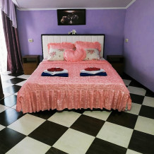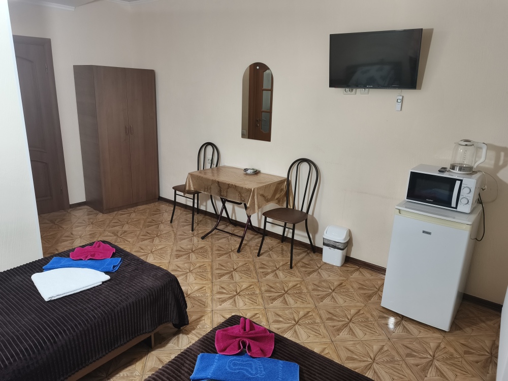 Все номера оборудованы кондиционером, холодильником, микроволновой печью, чайником и телевизором с плоским экраном(кабельное телевидение). В номерах имеется приветственный набор: мыло, шампунь, гель, тапочки, чай, туалетная бумага. Горячая и холодная вода круглосуточно. Белье и полотенца(три вида) меняются еженедельно во время уборки. Бесплатно предоставляется очищенная питьевая вода.