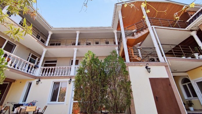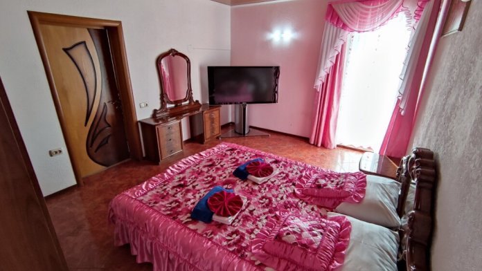 Гостевой дом «Золотой линкор» расположен в историческом ядре города Евпатория, в 350 метрах от берега Черного моря. Мы находимся в центре пешеходного маршрута «Малый Иерусалим», рядом синагога, мечеть, Николаевский собор, Гезлевские ворота, Караимские кенасы, Текие дервишей и другие достопримечательности. До набережной В.Терешковой можно дойти всего за 3 минуты, до ближайшего песчаного пляжа «Солярис» - за 10 минут, до центрального продовольственного рынка и круглосуточного супермаркета «Фреш»(самый больший в городе) - 10 минут, до охраняемых автостоянок(100 руб/сутки) - 5 минут. По отзывам гостей это любимая часть города Евпатории.