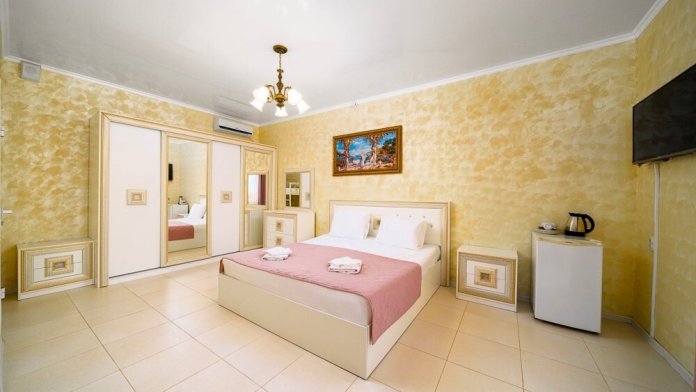 Гостевой дом располагается на Западном побережье Крыма, на территории базы отдыха «Прибой». Мы искренне считаем, что наша локация идеально подходит для комфортного отдыха с маленькими детьми: широкая береговая линия, новая оборудованная набережная, дорожки прямо к морю для всех гостей!