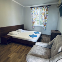 Однокомнатный номер с удобствами (две односпальные кровати, 1 раскладное кресло, тв, кондиционер, санузел, душ, холодильник)