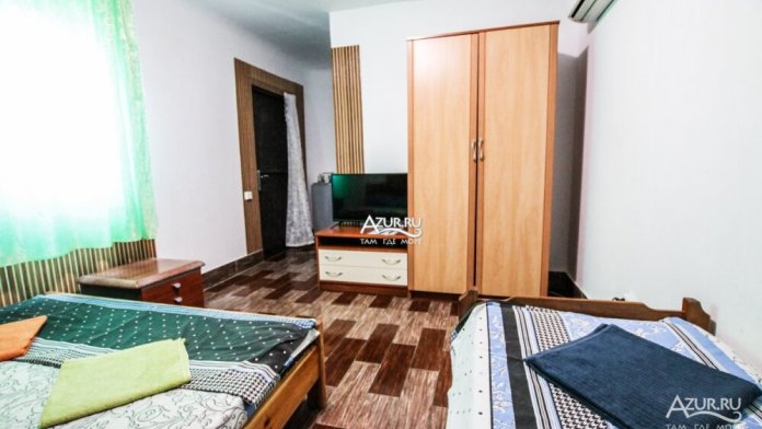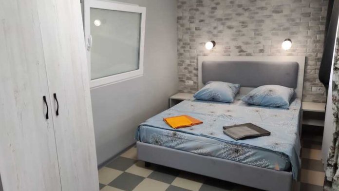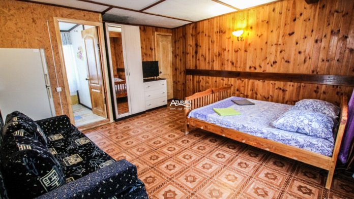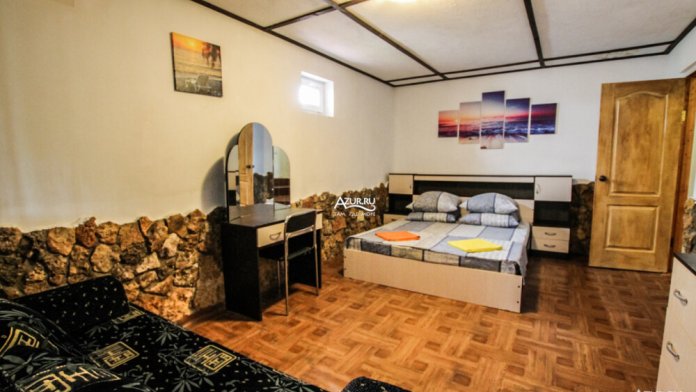 Номер находится на втором этаже, комнаты смежные. В номере имеется балкон с видом на лиман и море, с обеденной зоной (стол, два диванчика, холодильник, микроволновая печь, чайник, посуда).