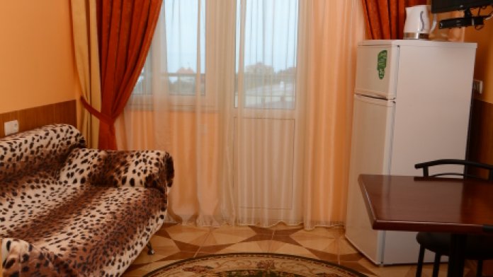В номере может проживать от 1 до 2 человек. В наличие двуспальный комфортабельный диван, нет балкона. Имеется чайник, холодильник, санузел.