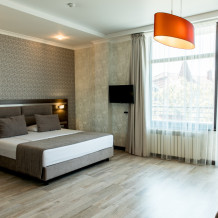 В номере большая двуспальная кровать с ортопедическим матрацем, высотой 25 см, диван-кровать, кондиционер, телевизор. Ванная комната. Фен, сушка для белья, гладильная доска, утюг в номере. Сейф с цифровым замком.