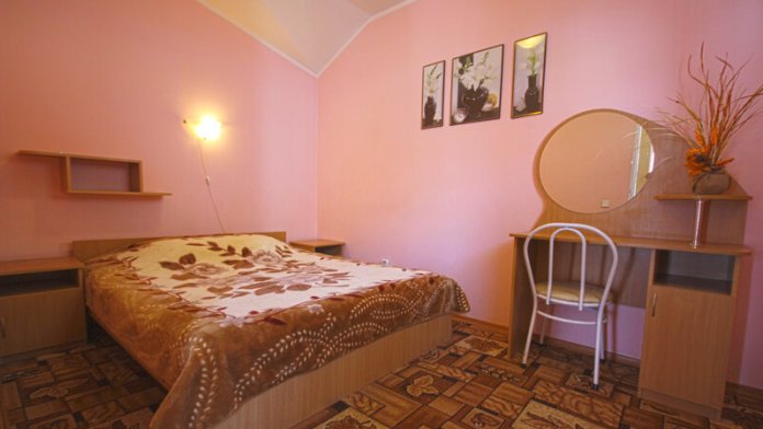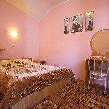 Отдельные двухкомнатные домики площадью 25-28 кв.м. на 2-3 человека со всеми удобствами (душ, телевизор, холодильник, кондиционер, чайник). Спальные места: двуспальная кровать и раскладной двухместный диван. Горячая и холодная вода круглосуточно.