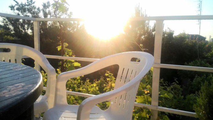 стандартный четырехместный номер с террасой с дачной мебелью.