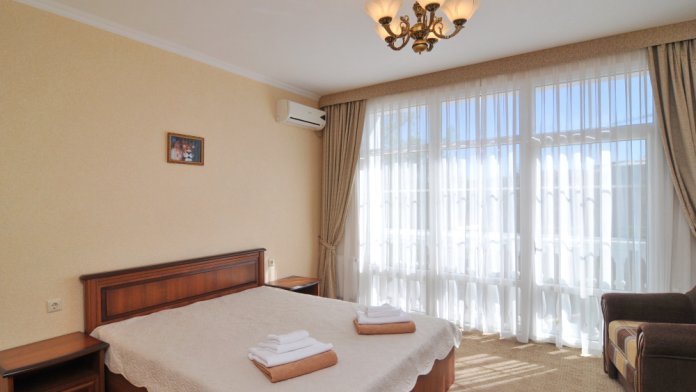 Хороший отель. Самое важное, что отель стоит в 30м от лучшего пляжа в Феодосии. 1 мин до моря!! В самом отеле все чисто и убрано. Посещали хамам с бассейном, все норм, но сам хамам небольшой, нет ни чая, ни услуг массажа, но в общем для погреться и расслабиться, то вполне. Минус, то что нет чайников в номерах, кулеры на этаже не греют воду. В остальном все отлично!! Завтраки очень насыщенные, каши, яичницы и т.д. В номерах все чисто, убираются качественно. Рекомендую этот отель!!