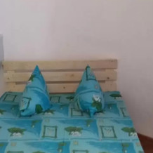 Комната во дворе, находится возле кухни. Кровать 1,80м х 2м и раскладное кресло 0,90 м х 1,70 м, в виде медвежонка для ребёнка подросткового возраста. Есть холодильник, телевизор, кондиционер, шкаф, тумбочки, прикроватные коврики. Санузел с душевой кабинкой. Дворик - столовая с лавочкой, столом и стульями.