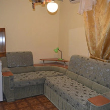 Находится на 2 этаже, в отдельно стоящем летнем домике. В комнате 3 отдельные кровати 0,9 х 2 м. По желанию 2 из них можно сдвинуть в одну большую. Есть шкаф, тумбочка, зеркало, телевизор, холодильник, кондиционер, чайник. Санузел в номере (душ, туалет, умывальник). Есть балкон большой с креслом и столом. На балконе лежанка. Можно отдыхать в тени виноградной лозы. Возле домика есть отдельная беседка только для Вас. Кухня - в 5 м от домика. Бассейн и детская площадка рядом. Балкон большой с креслом и столом.