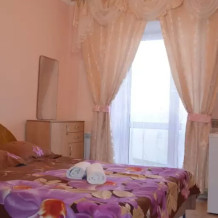 В номере: кровать широкая 1,6 м х 1,9 м, балкон, душ, туалет, умывальник, холодильник, телевизор, вентилятор. Шкаф, комод с зеркалом, пуфик, коврики прикроватные. Кровать 1 двуспальная или 2 односпальные.