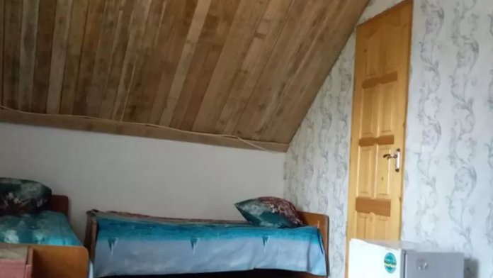 На 2 этаже, в отдельно стоящем летнем домике. Санузел в номере (душ, туалет, умывальник). Кровати: одна общая и две 0,9 х 2 м (можно сдвигать в одну большую), шкаф, тумбочки, зеркало, телевизор, холодильник, кондиционер, чайник. Беседка уютная и удобная только для Вас, завита виноградом. Есть мангал и дрова бесплатно. Кухня общего пользования находится в 10 м от Вашего жилья. Там же бассейн и детская площадка.