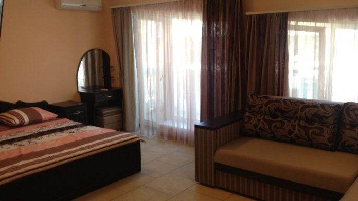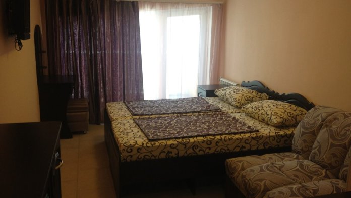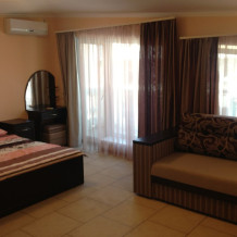 В номере: Раздвижной диван, большая 2-спальная кровать, LCD телевизор (спутниковое телевидение), кухня и холодильник, большой балкон со столиком и стульями.