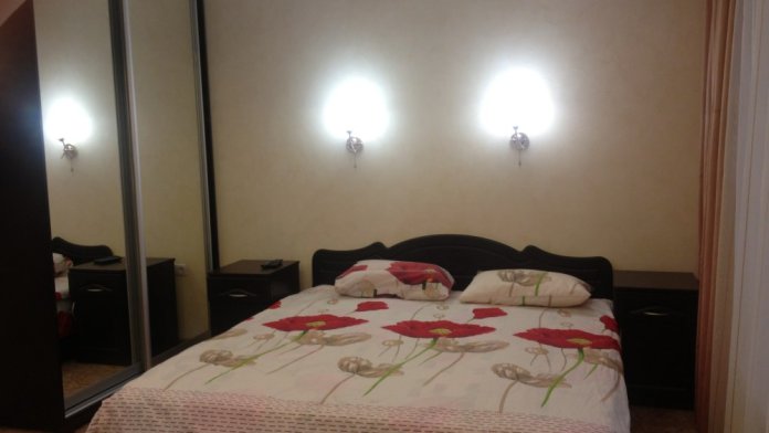 На первом этаже гостиная с оборудованной кухней. На втором и третьем этаже номера: 2 номера двухместных, 4 двухместных с дополнительным спальным местом, одни апартаменты с кухней, 2-спальной кроватью и раздвижным диваном, вторые такие же, имеют отдельный вход. В каждом номере холодильник, телевизор, огромный балкон со столиком и стульями, высокоскоростной Wi-Fi.