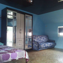 Отличный отдых для большой семьи. Два просторных номера с общим входом, санузлом, душевой и с выходом во внутренний двор с детской площадкой и летней кухней ждут своих гостей.