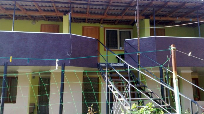 Возле номера есть терраса для отдыха, в комнате стоит вентилятор. Общая кухня, постирочная, умывальники, 2 туалета и 2 душа находятся во дворе