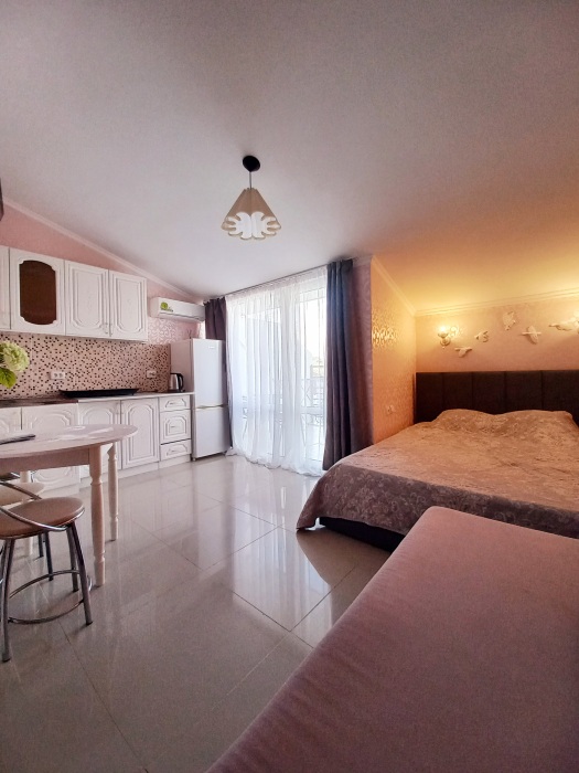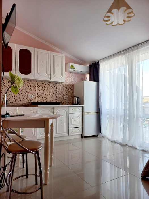 В апартаментах сделан современный ремонт. Есть необходимая мебель, бытовая техника, а так же кухонная зона для вашего комфортного отдыха.