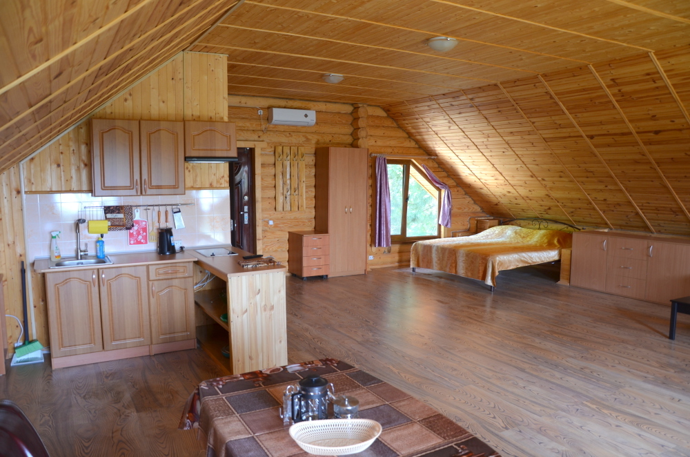 Этаж под ключ «Уютный» (45м2) включают в себя большую холл кухню (спальные места раскладывающийся диван)и спальню (спальные места двухспальная кровать), санузел(оборудован теплым полом), балкон с выходом на террасу оборудованный столиком. В вашем распоряжении будет Wi-Fi, плоский телевизор, стиральная машинка, сушилка для белья, кондиционер, микроволновую печь, чайник, утюг, фен, холодильник, полноценная кухня с варочной поверхностью и всеми принадлежностями для готовки.