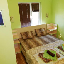 Комната-студия на 2 этаже трехэтажного дома. Для проживания есть всё необходимое: кровать двухспальная с ортопедическим матрасом, прикроватные тумбы, диван-кровать, кондиционер, холодильник, варочная поверхность электрическая на 2 конфорки, ТВ, WI-FI, бойлер 80 л (вода без перебоев), фен, утюг, посуда, бельё, полотенца, балкон/лоджия, парковочное место.