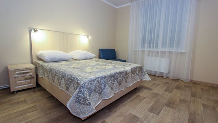 — Квартира рассчитана на 7 человека, находится по Циолковского на первом этаже 5 этажного нового дома в жилом комплексе «КОНСОЛЬ».
