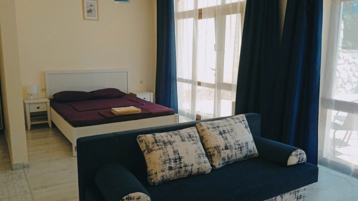К услугам гостей апартаменты разной вместимости, со всем необходимым для комфортного отдыха и проживания. Есть оборудованные кухней.