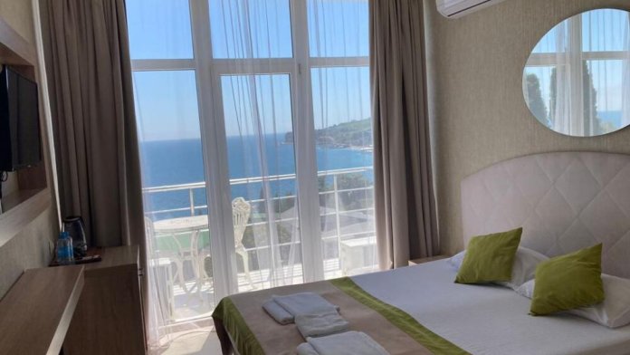 Расположенный всего в 150 метрах от моря, наш отель предлагает уникальное сочетание комфорта, уединения и природной красоты. Из панорамных балконов открываются захватывающие виды на бескрайнее море и легендарную гору Аю‑Даг и Медведь‑гору — пейзаж, который вдохновляет и дарит ощущение безмятежности.