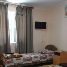Каждый номер вместимостью 4+1 человека. Возможен вариант аренды всего корпуса целиком, как отдельно стоящего дома под ключ. Во дворе: парковка, беседка с мангалом, зеленая территория с фруктовым садом.