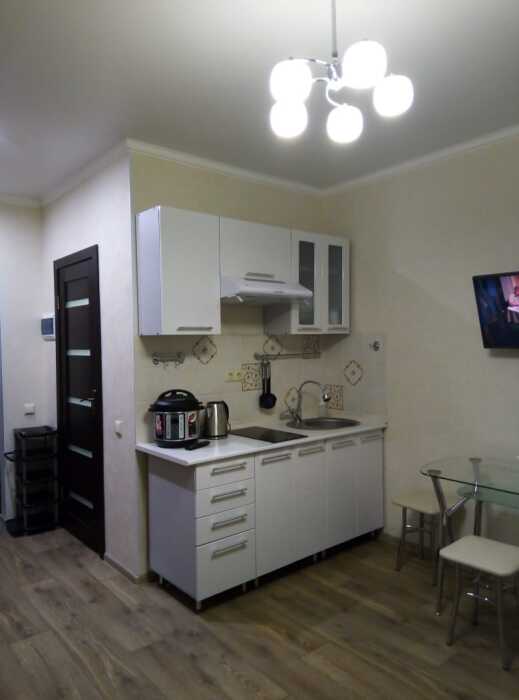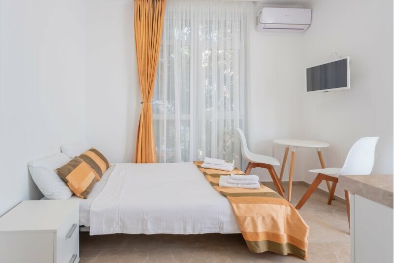 Светлые небольшие апартаменты с эркером. В апартаментах полноценная кухня. Спальное место - удобная раскладная еврокровать. Номер оборудован кондиционером, набором посуды, текстиля, полотенец, стиральной машиной.