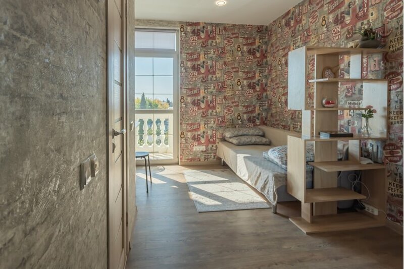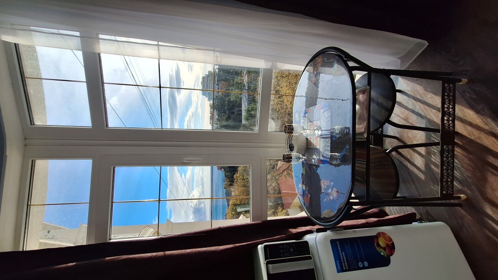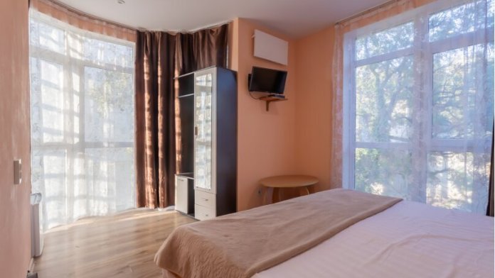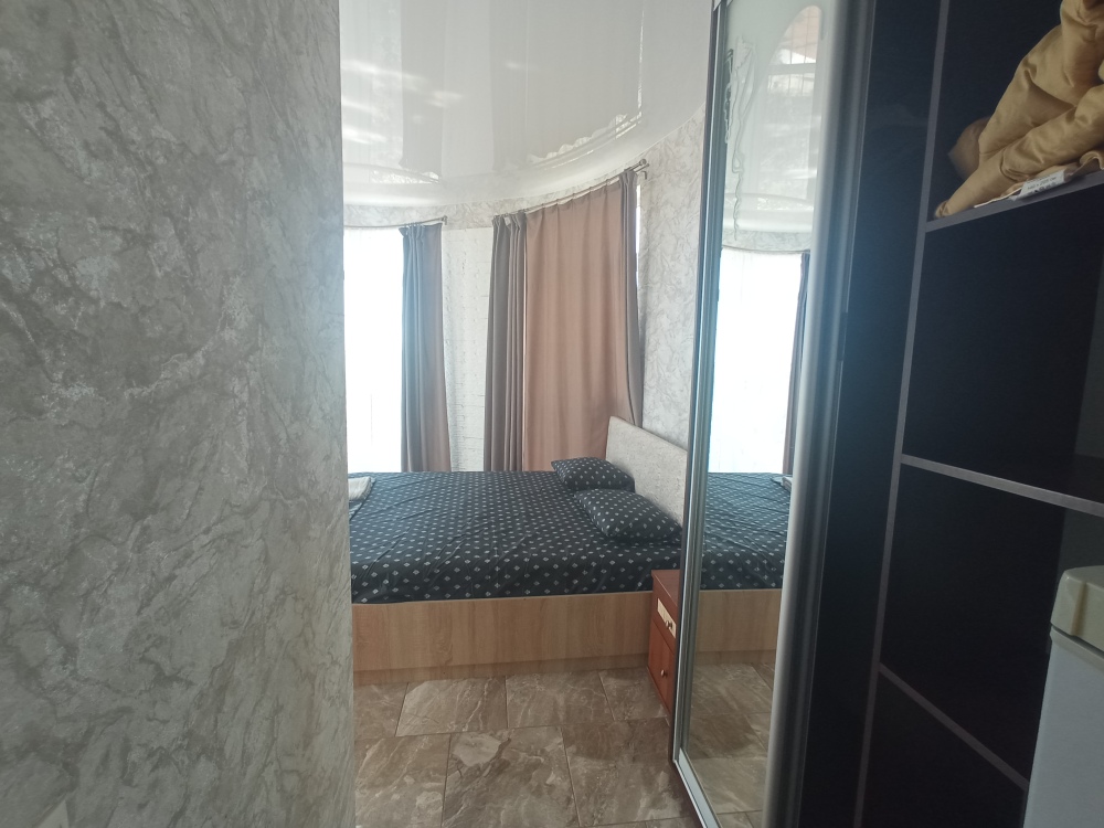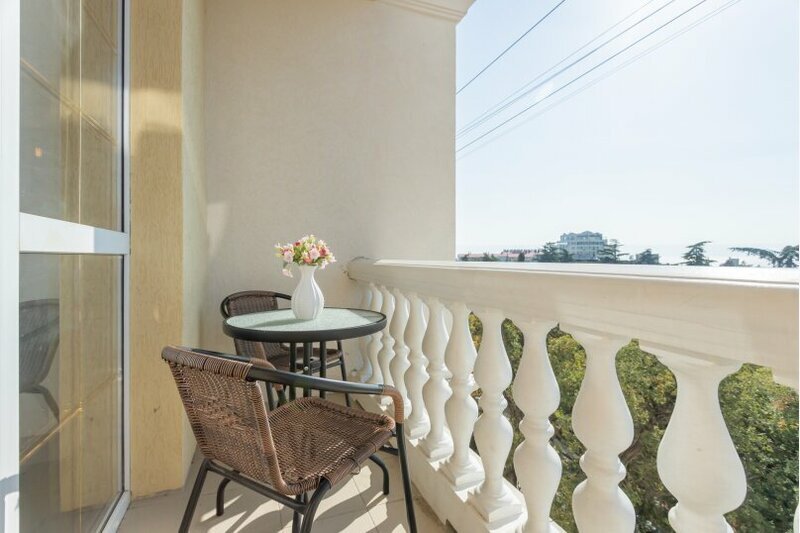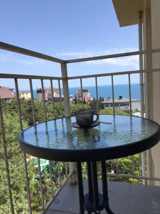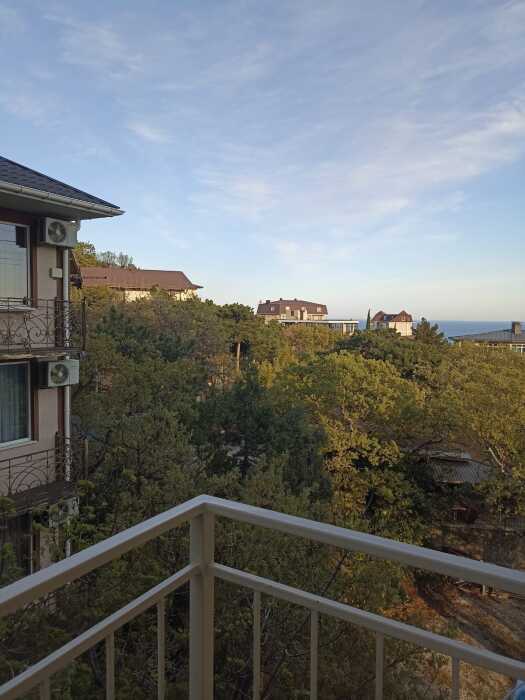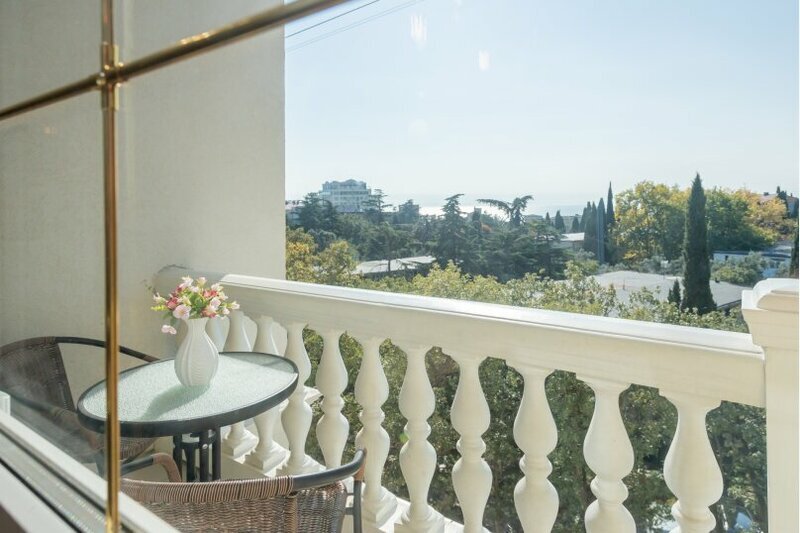 Круглый видовой номер с мини кухней. Из всех окон открывается шикарный вид на море, горы Ай-Петри, ближайшие парки и поселки вплоть до Алупкинской гряды.