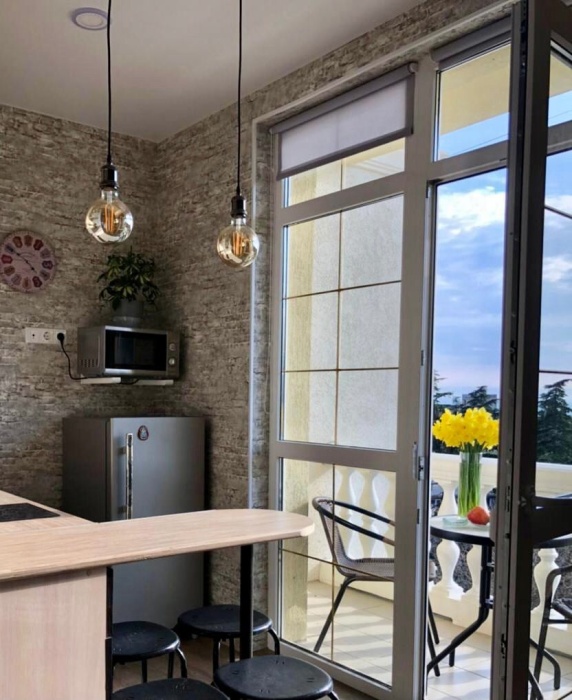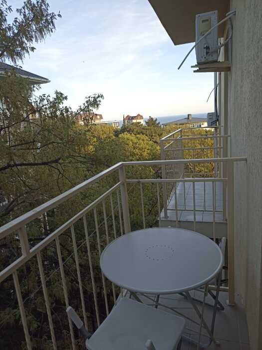 Семейный номер на 4-5 этаже, состоящий из спальни, небольшой полноценной кухни. Из всех окон и с балкона открывается шикарный вид на море и горы Ай Петри. В номере двуспальная кровать и раскладной диван. Номер также оборудован кондиционером, набором посуды, текстиля, полотенец, стиральной машиной. Отличительная черта данного номера в том, что регулярно на балкон прилетает дрессированная чайка (на фото), которая может составить Вам компанию за еду).