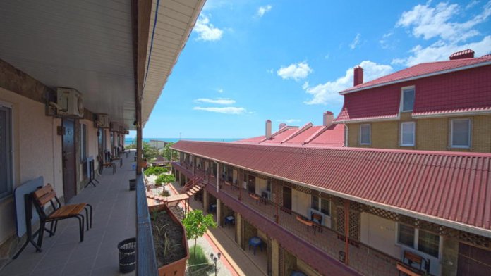 Один номер, расположен на 3 этаже. Общая площадь 50 кв.м. В номере спальня, проходная гостиная, кухня (с посудой), панорамные окна с видом на море, небольшой (французский) балкон. В номере двухспальная кровать, односпальный диванчик. Все удобства в номере (ванна, умывальник, туалет), горячая и холодная вода, гостиничный фен, стиральная машина, электроплита, чайник, посуда, микроволновка, холодильник, жидкокристаллический телевизор, в спальне кондиционер.