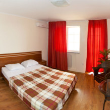 Трехэтажное, современное здание отеля, вмещает в себя 23 номера. Класса стандарт, двухкомнатные полу люксы и двухкомнатные люксы.