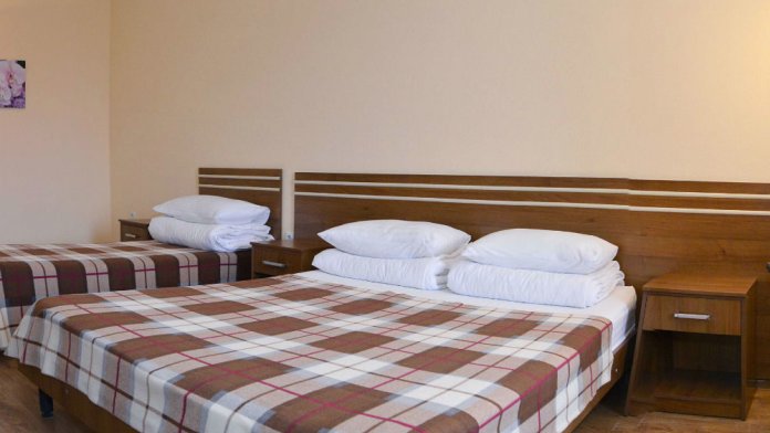 Двухкомнатный полулюкс — просторный двухкомнатный номер без балкона. В номере: двуспальная кровать, мягкая мебель, письменный стол, ТВ российское, холодильник.
