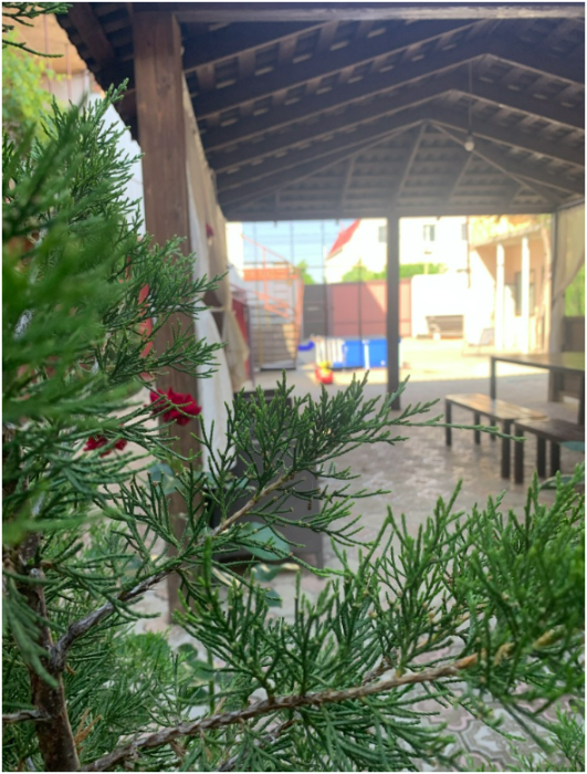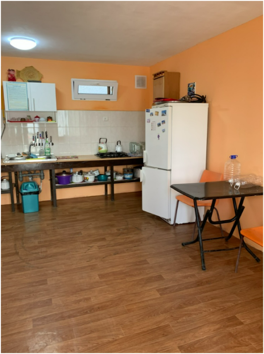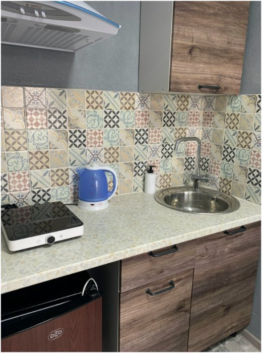 двухкомнатный номер расположен на первом этаже, со своей верандой и со столиком. В номере своя кухня с электроплитой.