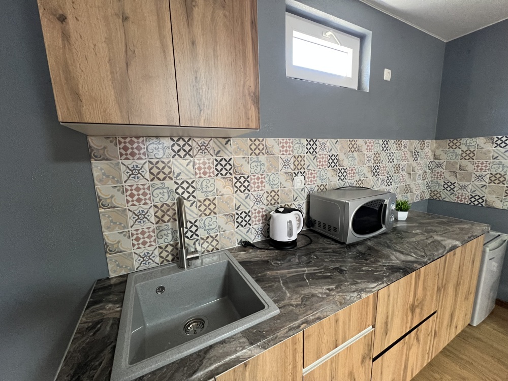 Однокомнатный номер находится на первом этаже, кроме этого этот номер еще имеет кухню с необходимой посудой и принадлежностями. Номер рассчитан на 4 места.